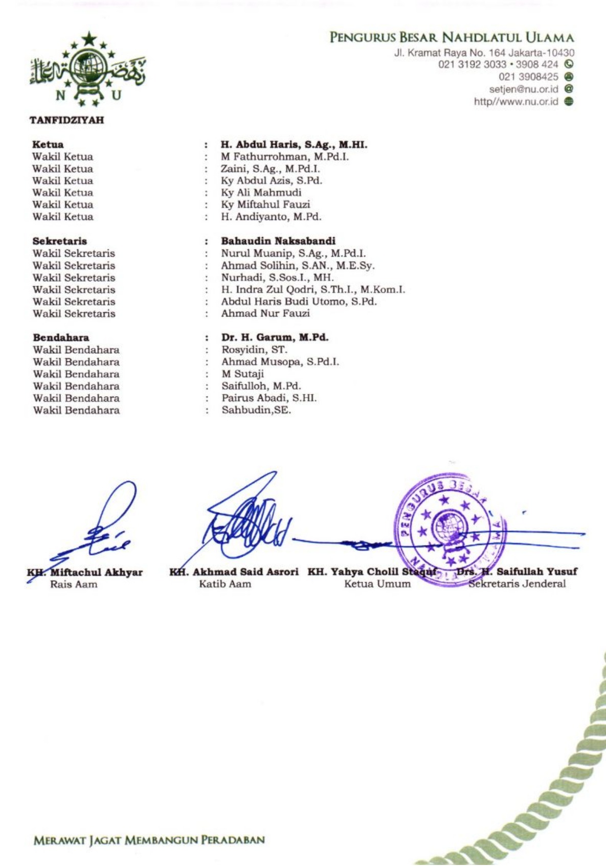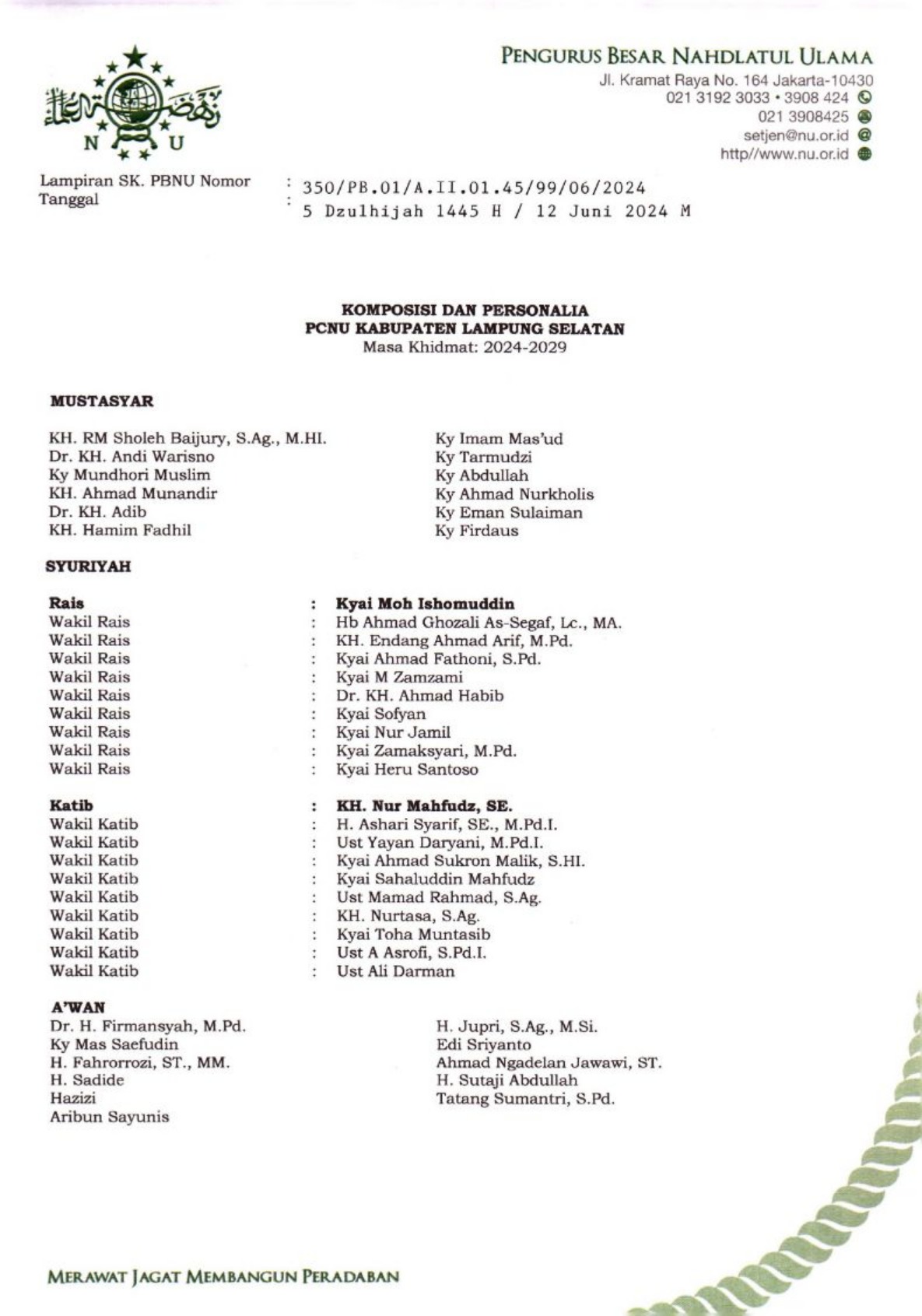 SK Pengurus PCNU Kabupaten Jayapura Periode 2024-2029